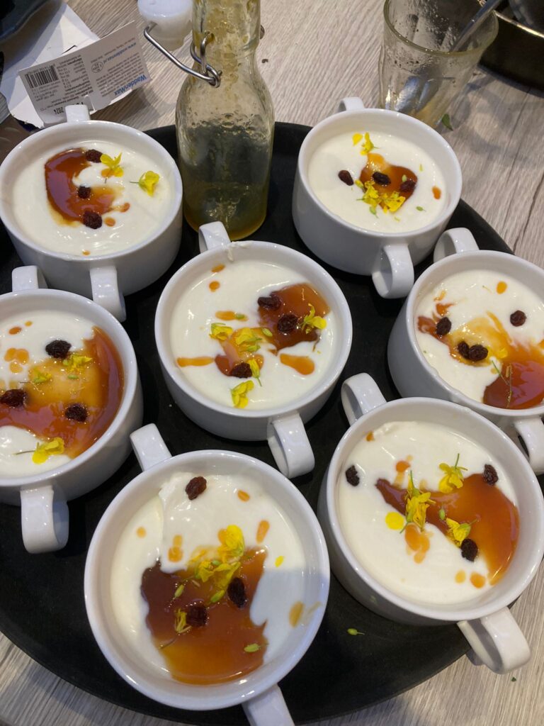 Dat maakt, zo lees ik ook bij alle happinessgoeroe’s, gelukkiger dan een wereld waarin alles om jou en wat je kunt consumeren draait, hoe fijn wellicht ook. Afgelopen week had ik een duurzame kookworkshop. We kookten met left-overs van lokale ondernemers. We bakten croutons van oud brood en maakten soep van courgettes. We gebruikten kruiden en groenten uit de eigen tuin zoals brandneteltopjes waar we quiche van maakten. En we aten een lekker toetje met biologische kwark, gekregen limoncello (niet alcoholisch) en daarop gele eetbare blaadjes van koolzaad. Eenvoudig, vrolijk en ook heerlijk om zo samen te koken en eten.